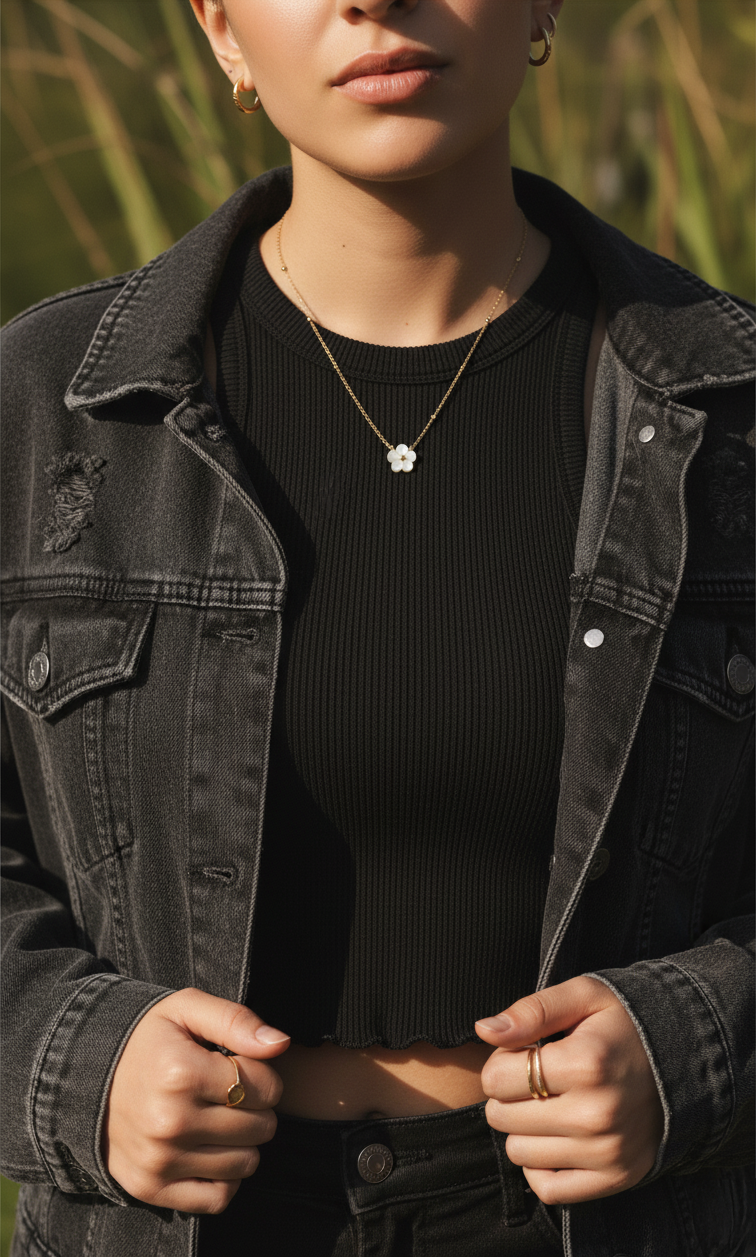 Blühen im Jetzt. Die HANAMI ist eine Hommage an die Schönheit des Moments. Zart schimmernd und fein gearbeitet, erinnert der Blütenanhänger an den kurzen, aber strahlenden Frühling der Kirschblüte. Voller Anmut, Leichtigkeit und Bedeutung. Die filigrane Kette aus vergoldetem Edelstahl unterstreicht die feine Struktur der Blume und macht HANAMI zu einem poetischen Begleiter für jeden Tag. Allein getragen oder im Layering-Look. Trage die Erinnerung an die schönsten Augenblicke direkt am Herzen.