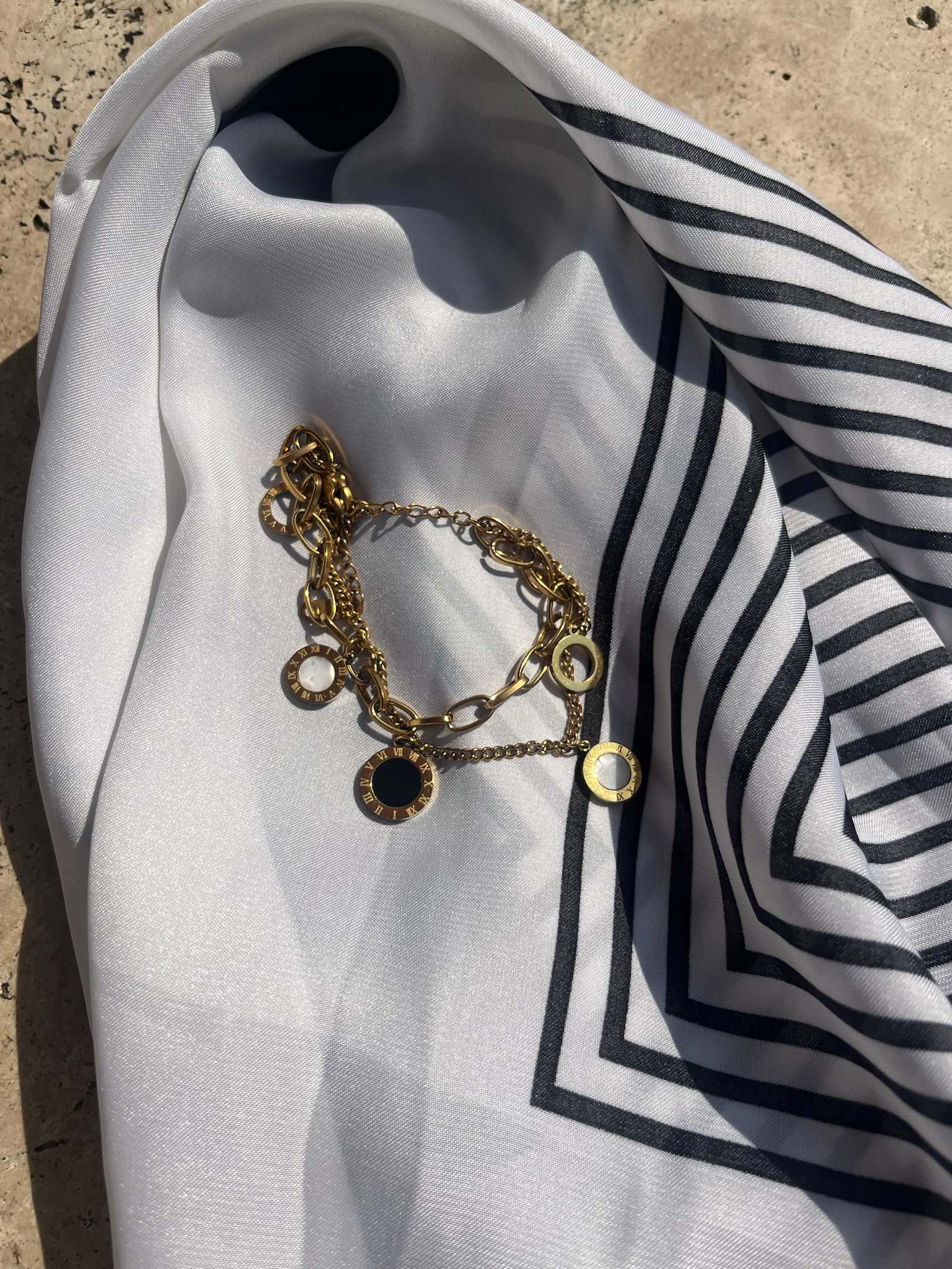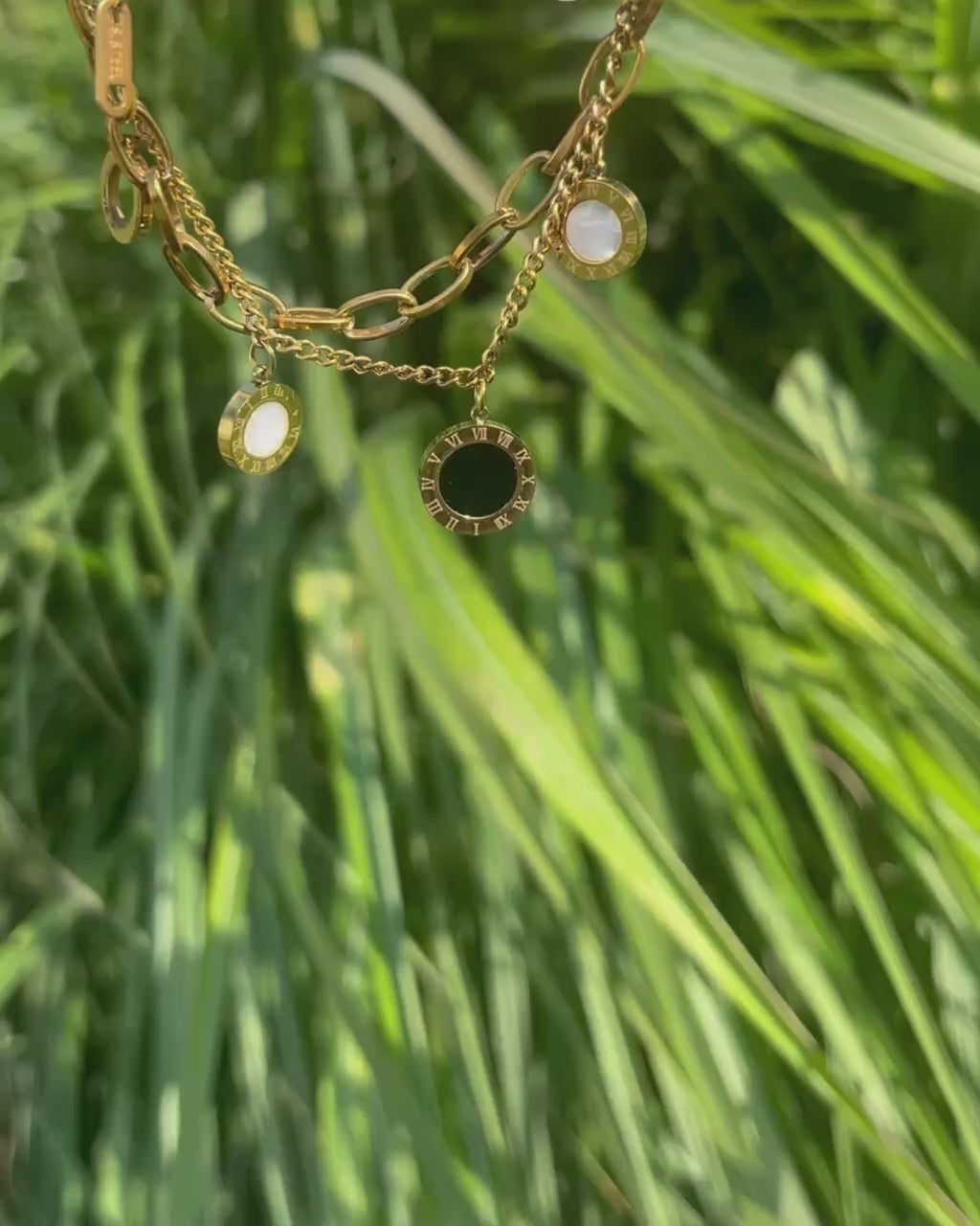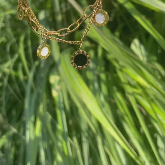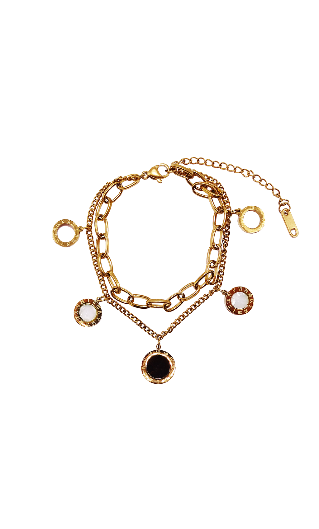 Zwei Reihen. Ein Statement. IMPERIA ist Schmuck, der Stärke und Eleganz vereint. Zwei vergoldete Ketten verschmelzen zu einem harmonischen Design, veredelt durch Anhänger mit römischen Ziffern. Ein Blickfang, der deinen Stil unterstreicht.