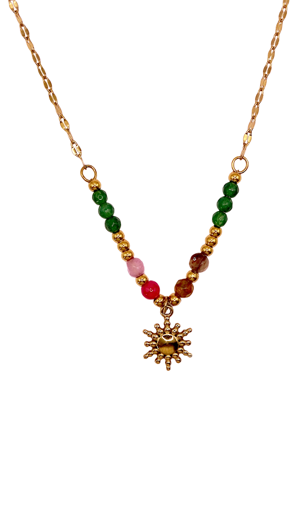 Trage das Licht bei dir. Die SOLÉA ist dein tägliches Strahlen. Eingefangen in einem vergoldeten Sonnen-Medaillon, umgeben von farbenfrohen Perlen. Inspiriert von mediterraner Leichtigkeit und der Kraft des Lichts bringt sie Wärme in jedes Outfit. Jede Kette ist handverlesen und einzigartig. Die Farbtöne der unteren Perlen können variieren und machen jedes Stück zu deinem ganz persönlichen Unikat. Genau wie du. Ob im Sommerkleid oder als Statement zu klaren Looks. SOLÉA macht jeden Tag ein bisschen heller.