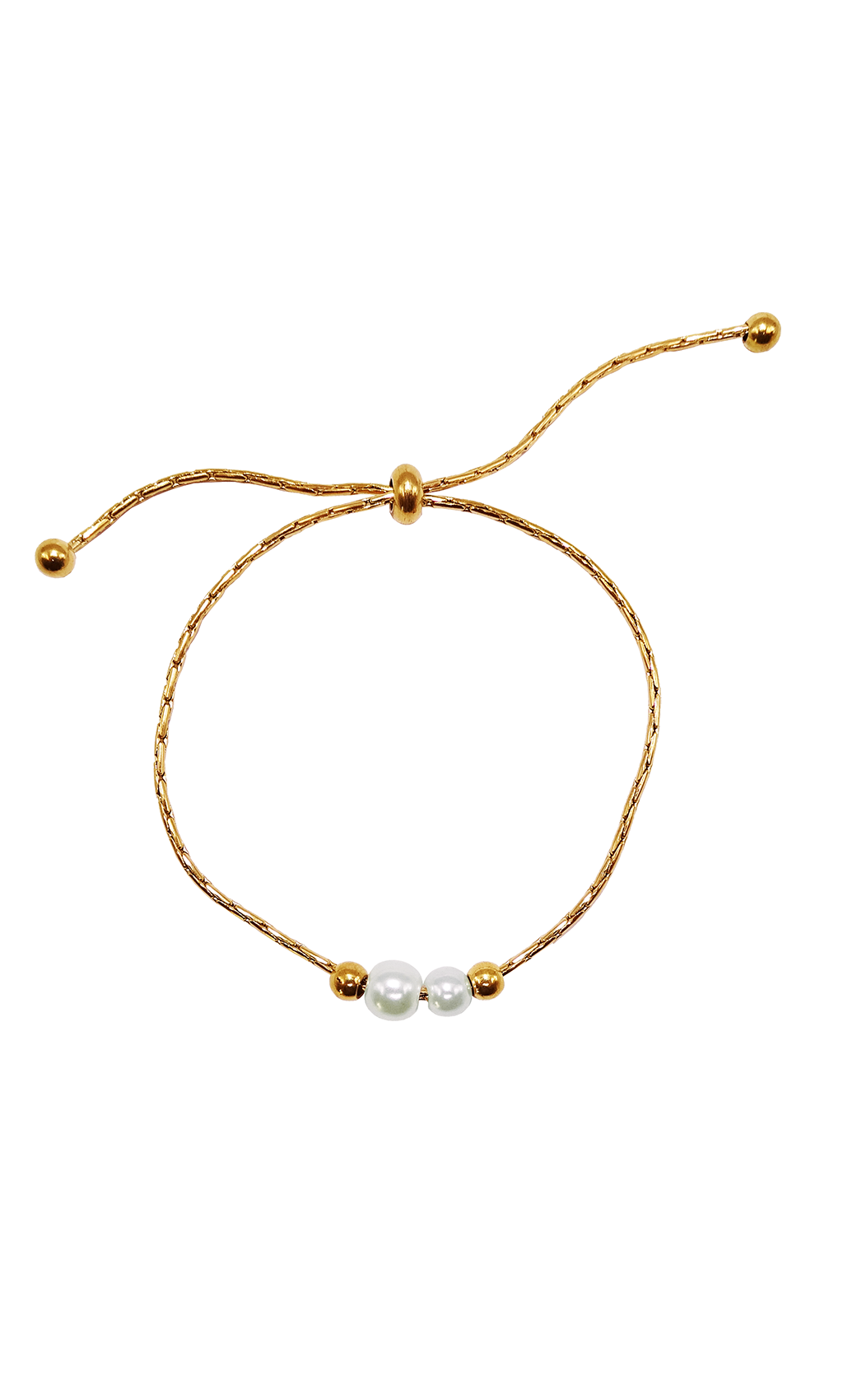 MARIS sorgt mit seinem feinen vergoldeten Geflecht und dem sanften Schimmer von zwei Süßwasserperlen für dezente Eleganz. Das verstellbare Design garantiert eine perfekte Passform. Zeitlos. Für jeden Tag.