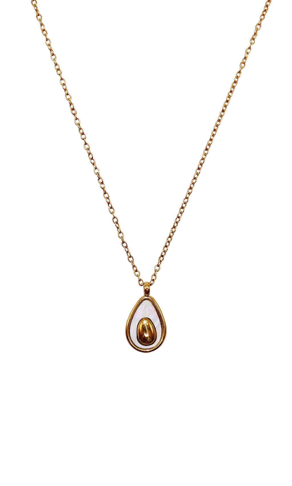 PERLA DORÉ verbindet die zeitlose Schönheit von Perlmutt mit dem warmen Glanz vergoldeter Details. Der tropfenförmige Anhänger reflektiert sanft das Licht und setzt einen dezenten, luxuriösen Akzent. Ein elegantes Schmuckstück, das sowohl im Alltag als auch zu besonderen Anlässen erstrahlt.